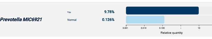 Identify which bacteria are outside the normal range and linked to the patient’s symptoms.