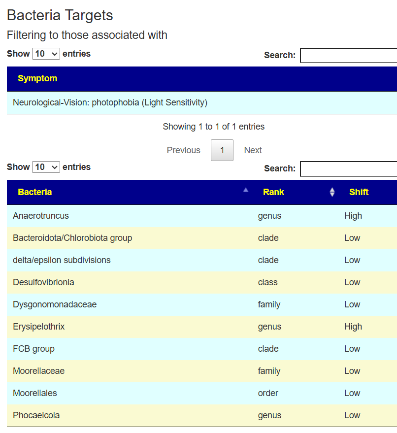 My daughter’s light sensitivity is now so bad, she’s screaming in pain at daylight and won’t let her flatmate put up the blinds! Of course it’s related to her autism. Now we’ve uploaded her new sample, is there anything implicated in her current dysbiosis that might lessen this?